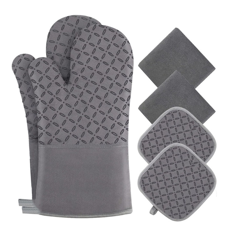 Color: gray gloves, gray heat shielding pad, gray four-piece set, Gray 6-Piece Set (2 gloves, 2 placemats, towel cloth 2)