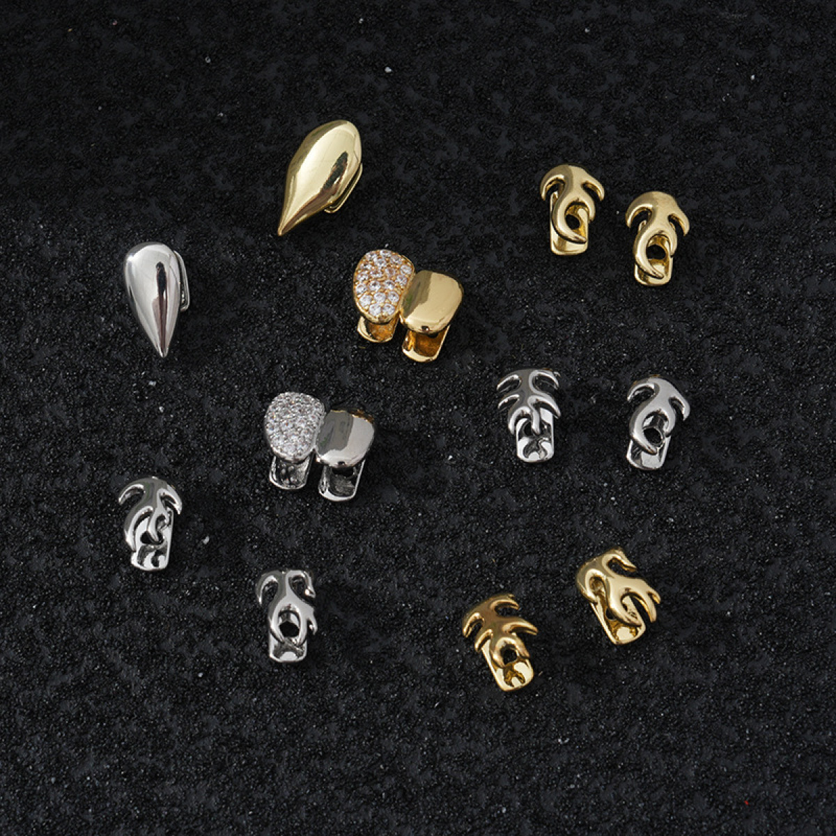 Color: silver five-pointed star single tooth, golden five-pointed star single tooth, golden flame single tooth, silver flame single tooth, Silver single tiger tooth, Golden single tiger tooth