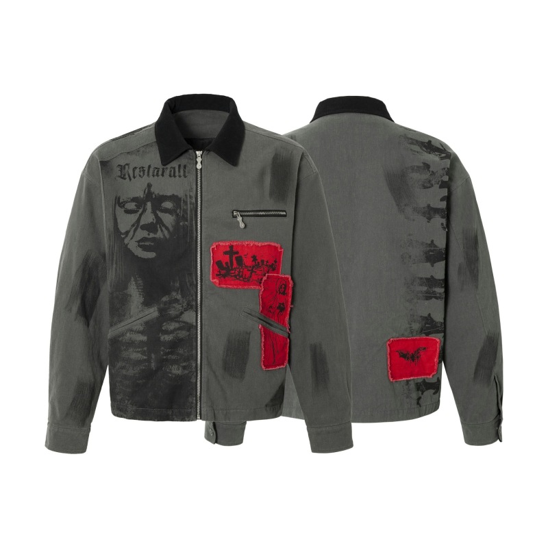 Real Shot American Retro Red And Black Patch Detroit Jacket