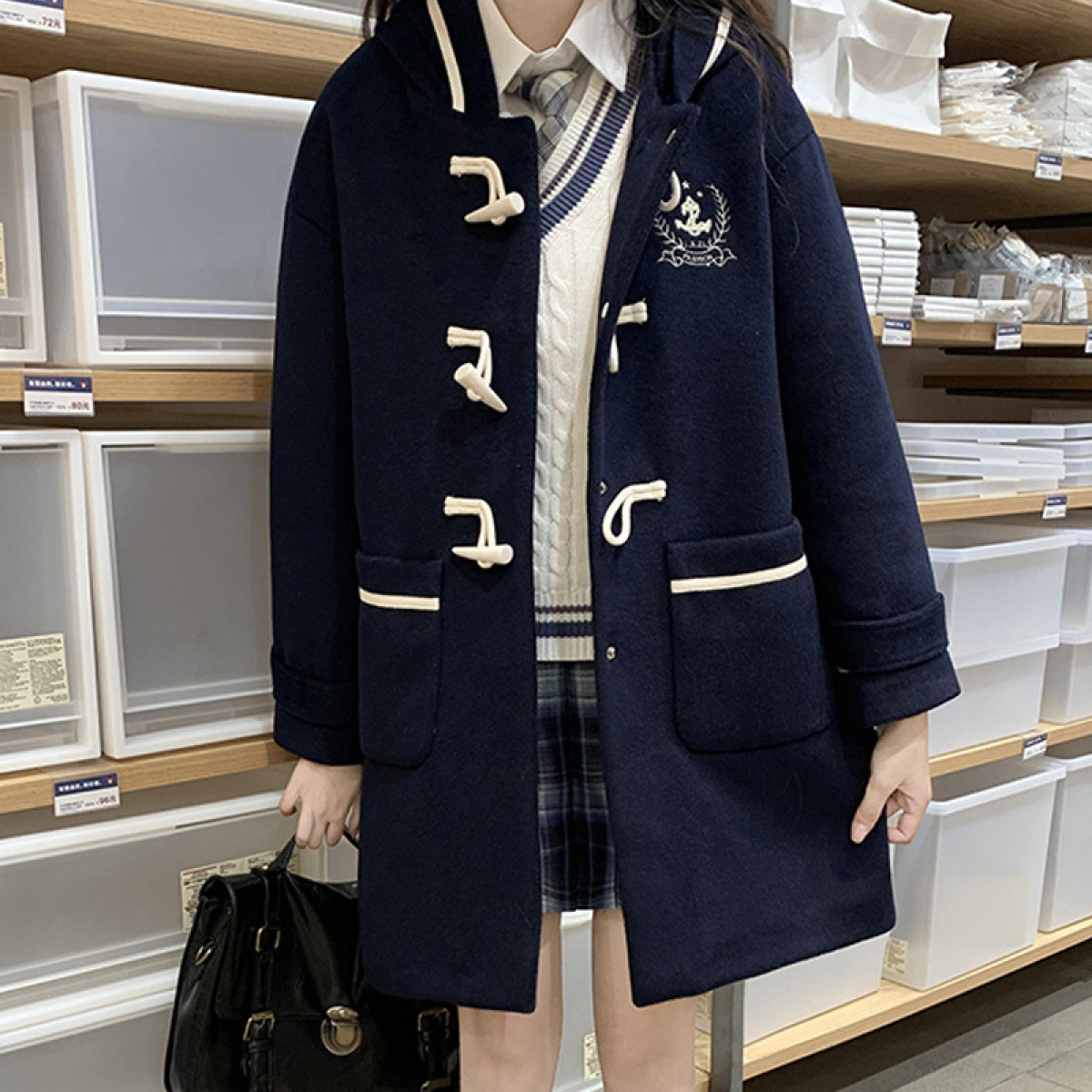 Color: 971 navy blue horn button, 971 apricot horn button