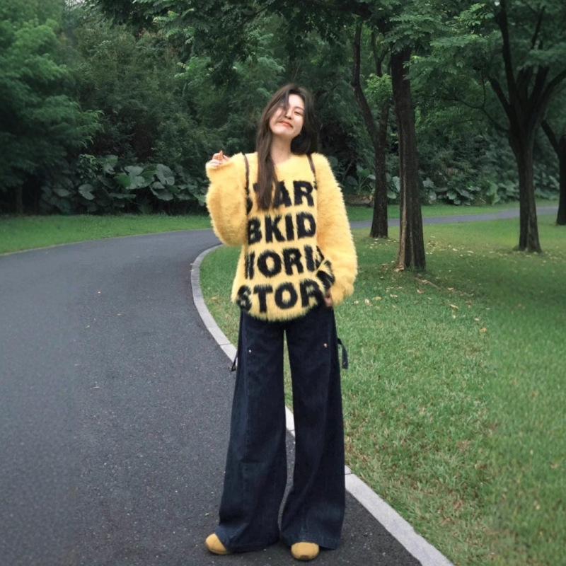 Color: yellow, apricot, black, navy blue