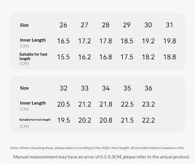 Size: 26, 27, 28, 29, 30, 31, 32, 33, 34, 35, 36