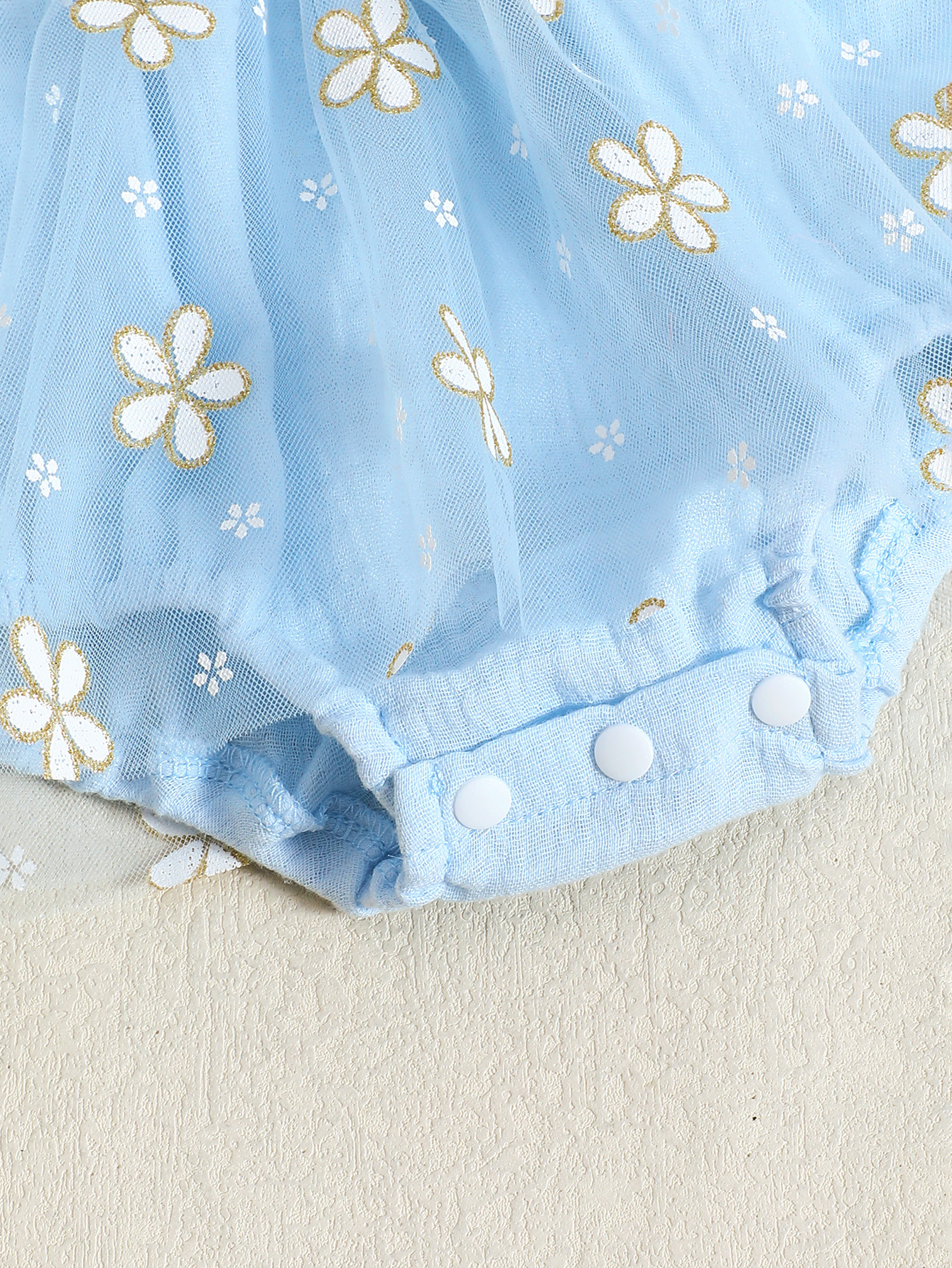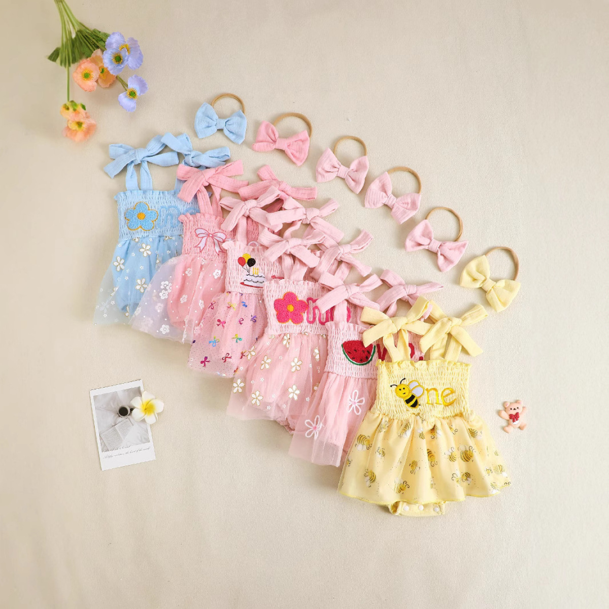 Baby Girl Smocking Embroidery Mesh Spaghetti-strap Dress