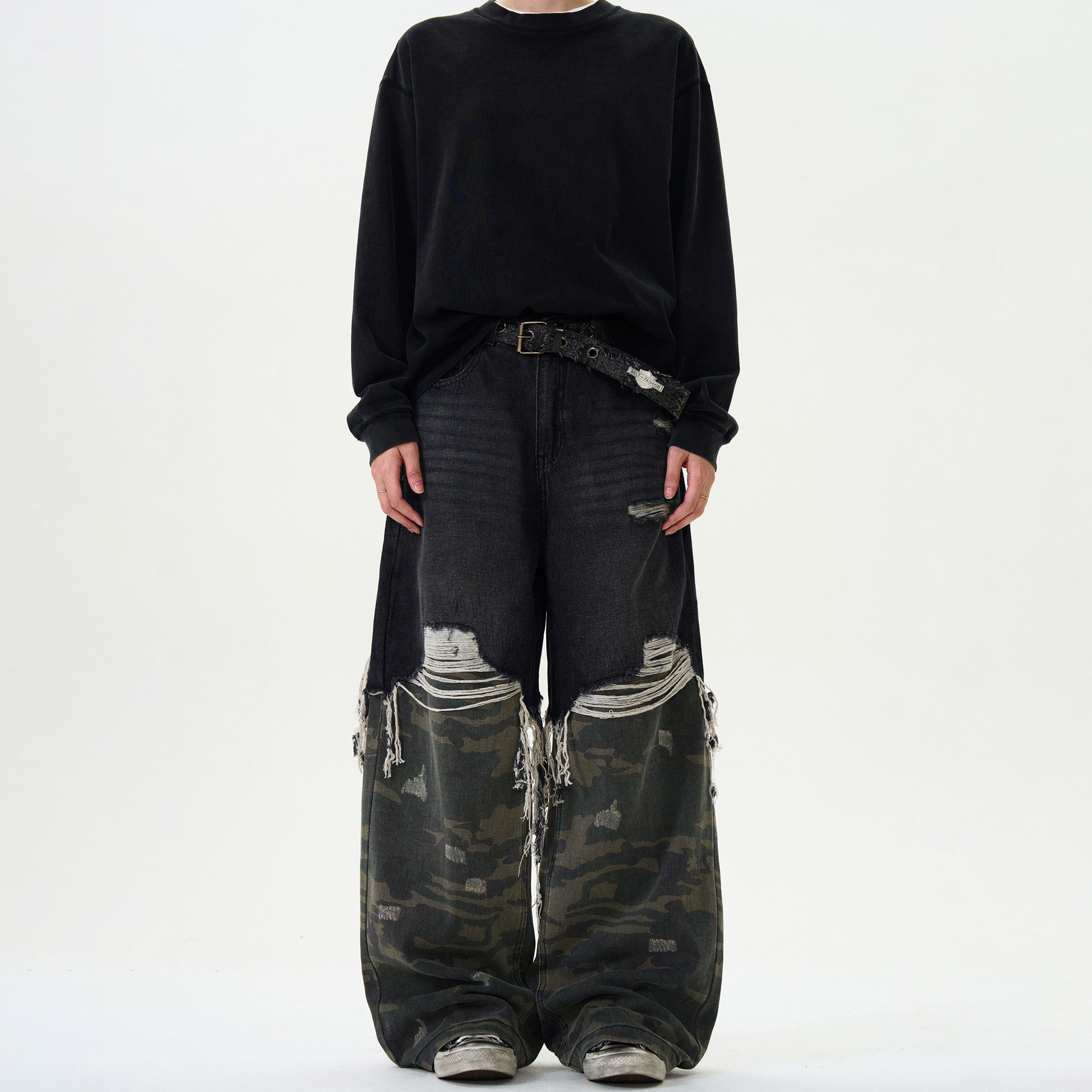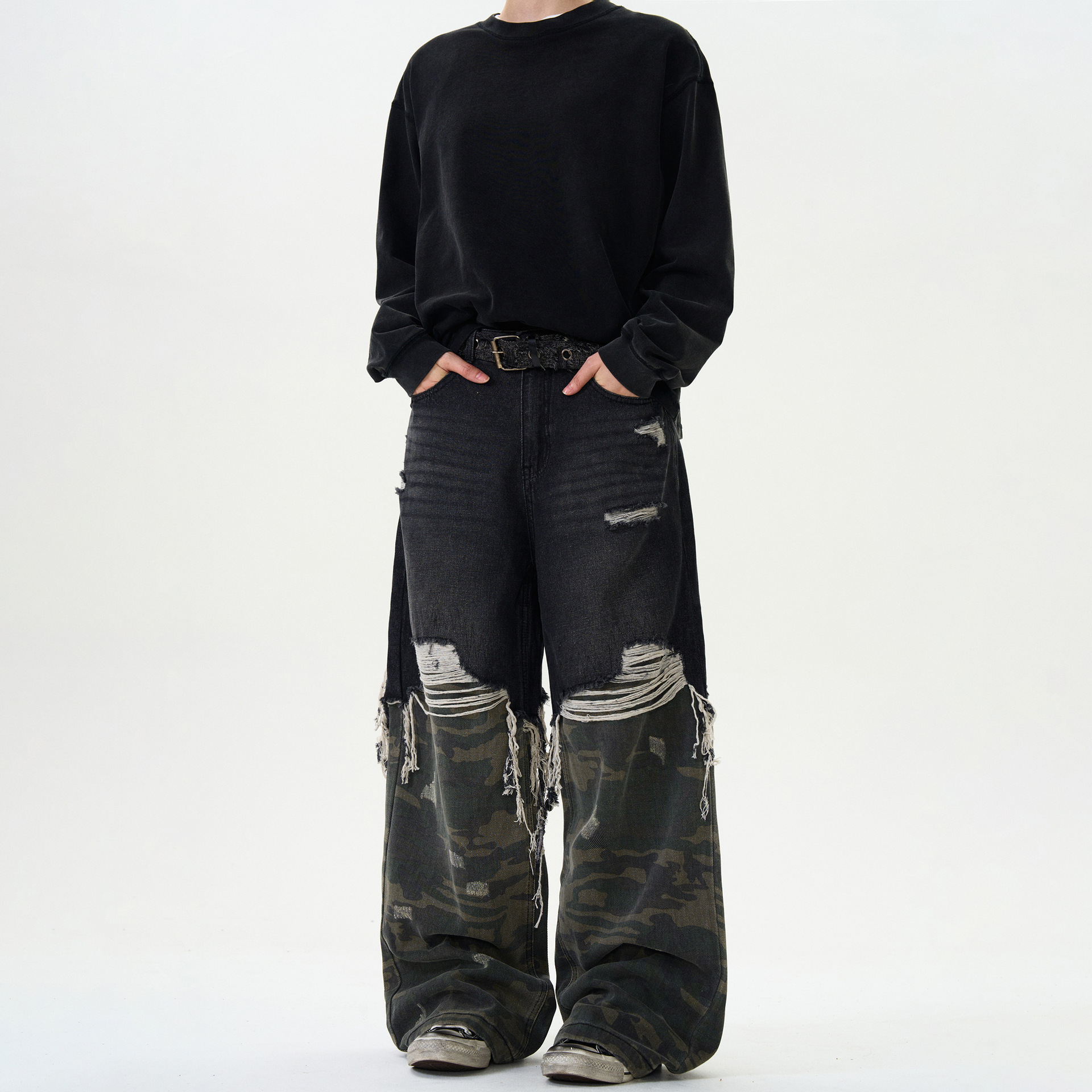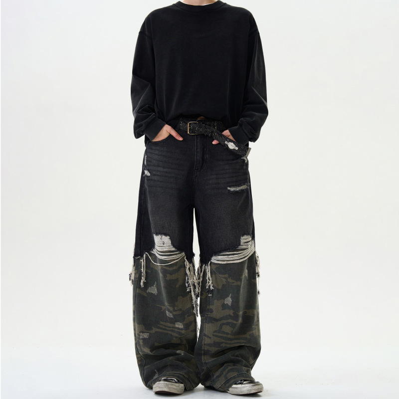 Fake Two-piece Jeans Men's Loose Casual Couple Camouflage Stitching Pants