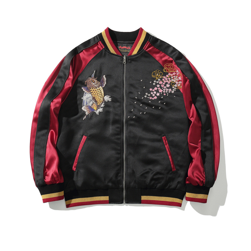 Machine Embroidery Men's Koi Embroidered Cotton Coat Jacket