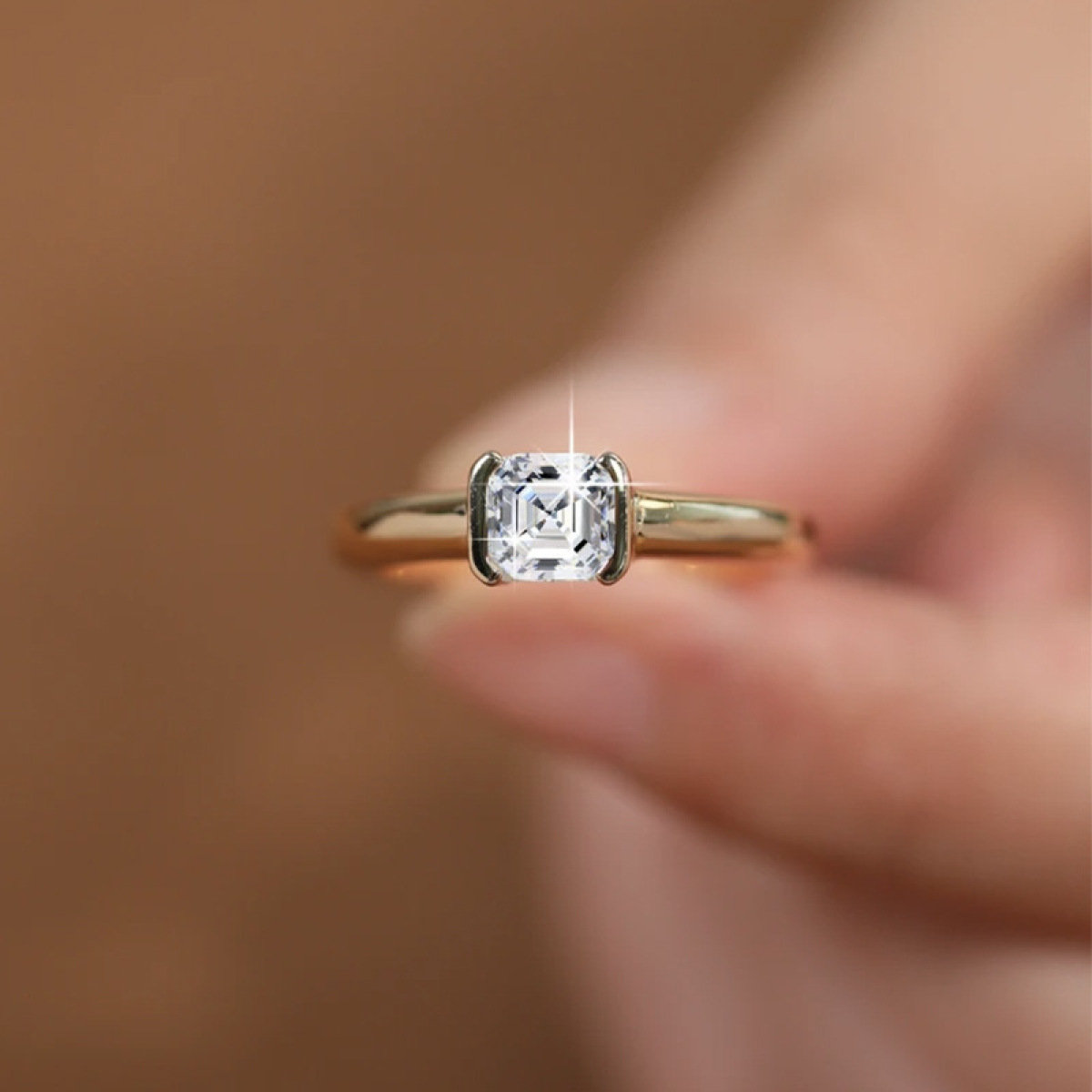 Asche Pagoda Cut White Diamond Cube Sugar Ring Female Ins