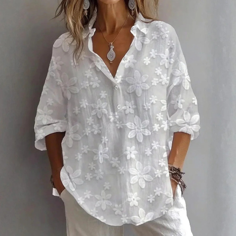 Spring And Autumn Cotton Jacquard Top 7-quarter Sleeve Top