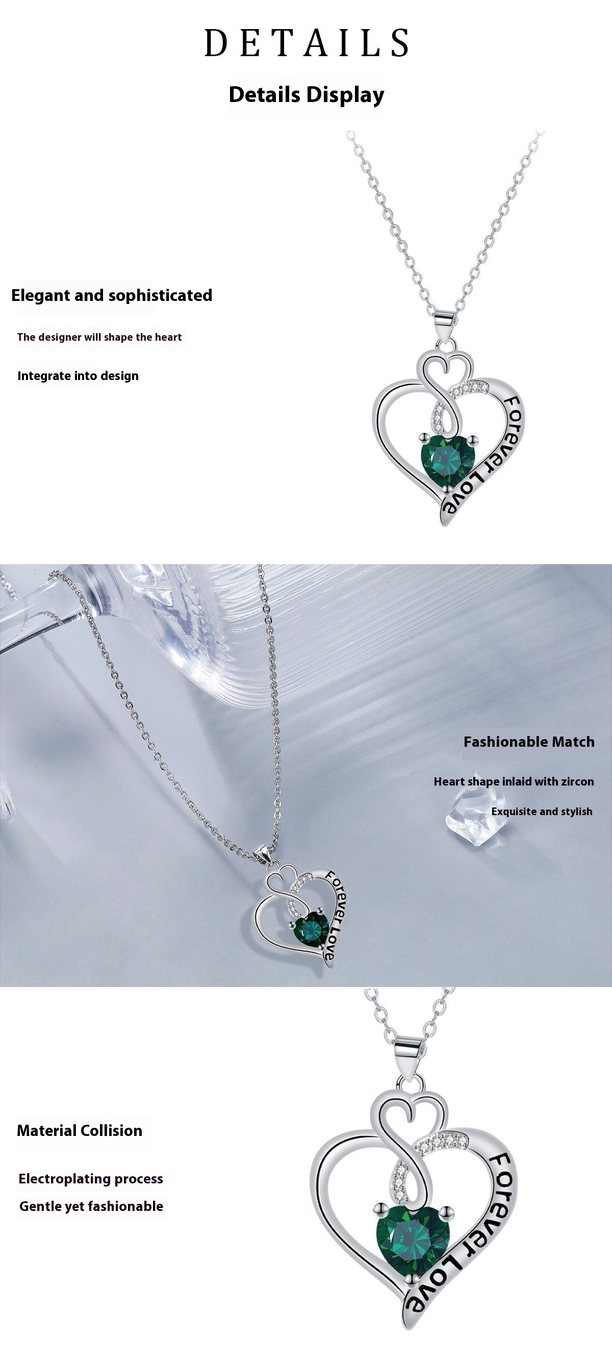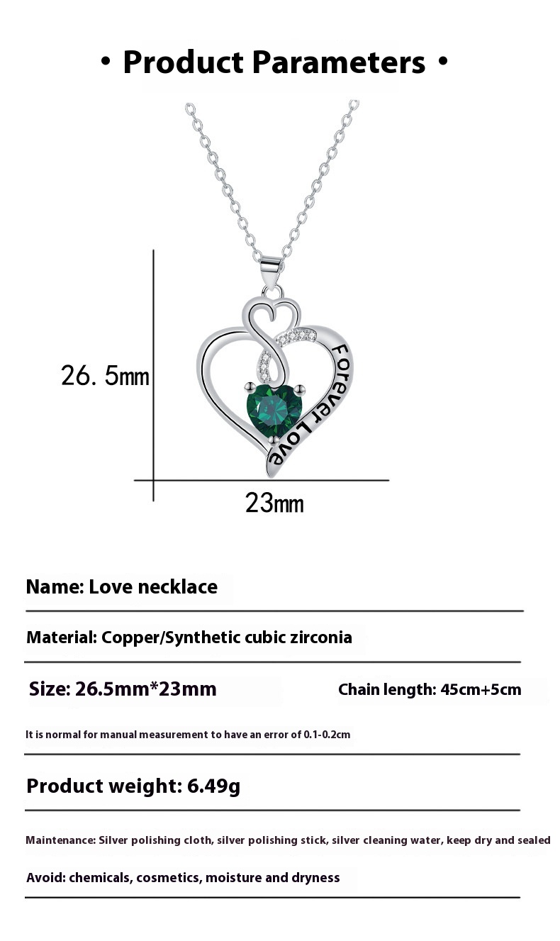 Elegant Infinite Love Green Necklace For Women Simple