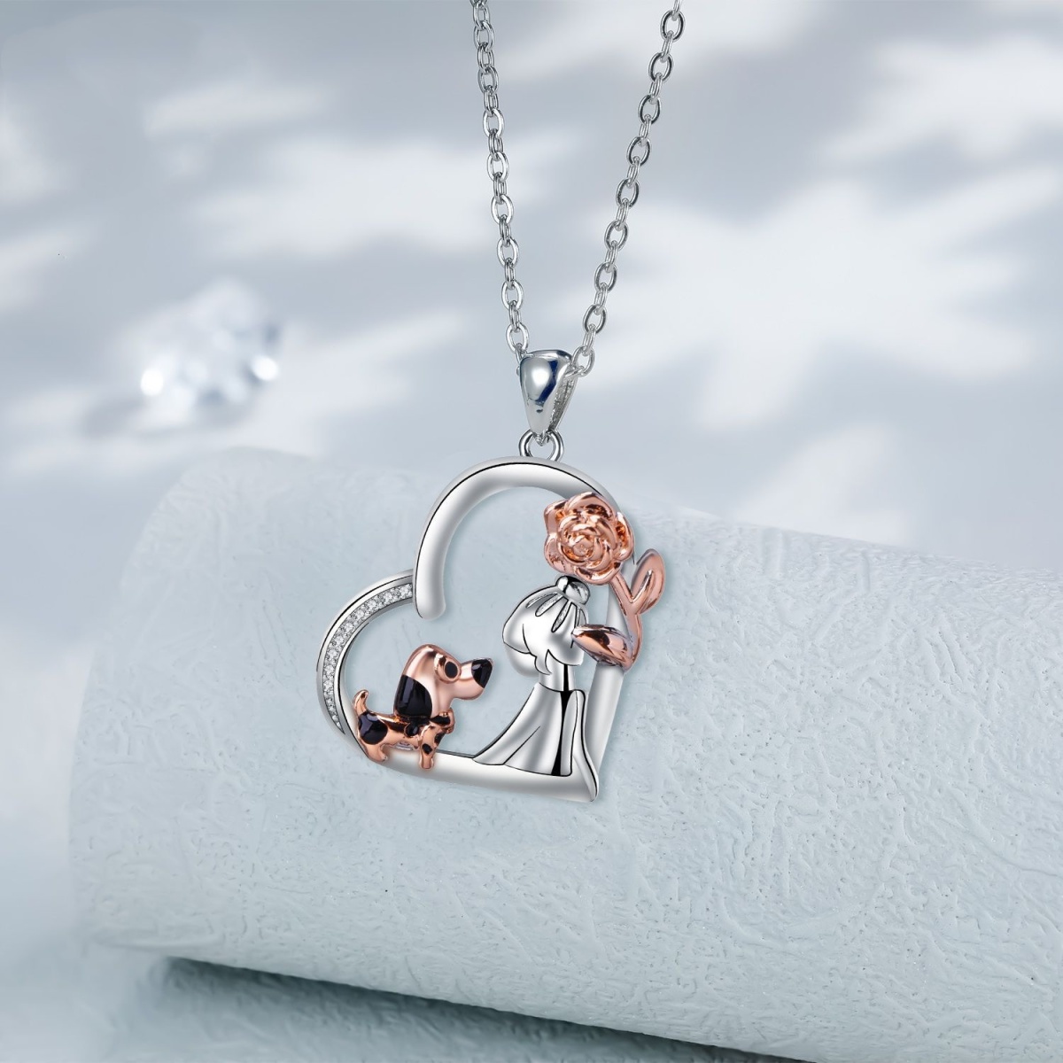 Heart-shaped Accessories Rose Girl With Dog Pendant Necklace