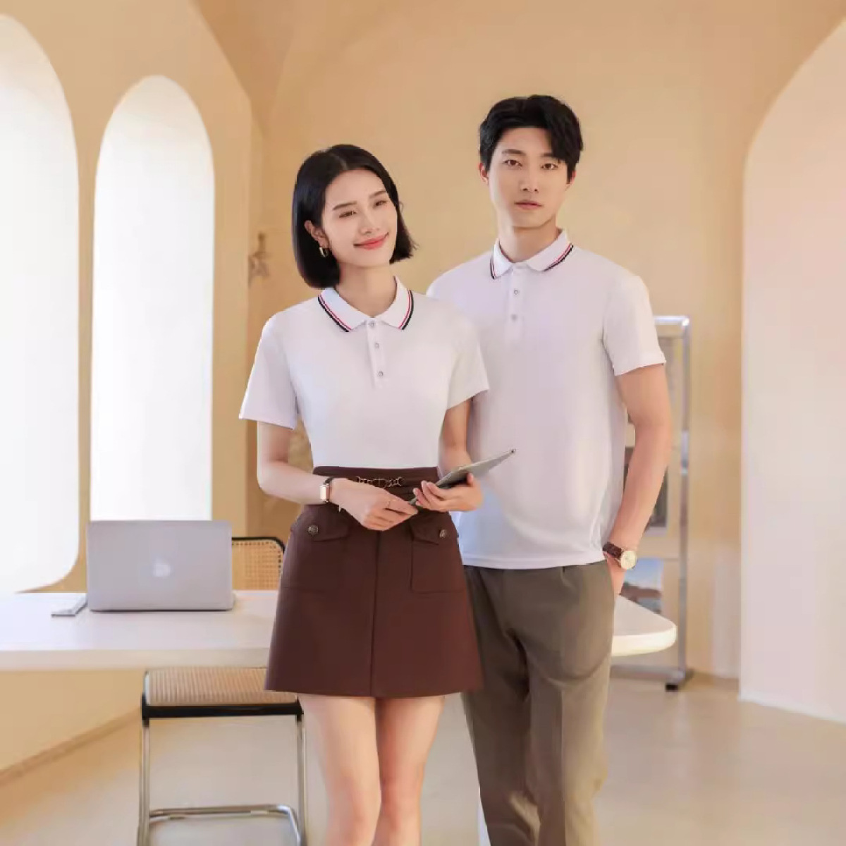 Men's And Women's Same Style Short Sleeve Work Clothes Youth Lapel T-shirt