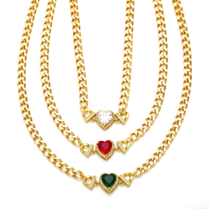 Necklace Hip Hop Cuban Link Chain Loving Heart Zircon Stitching Necklace