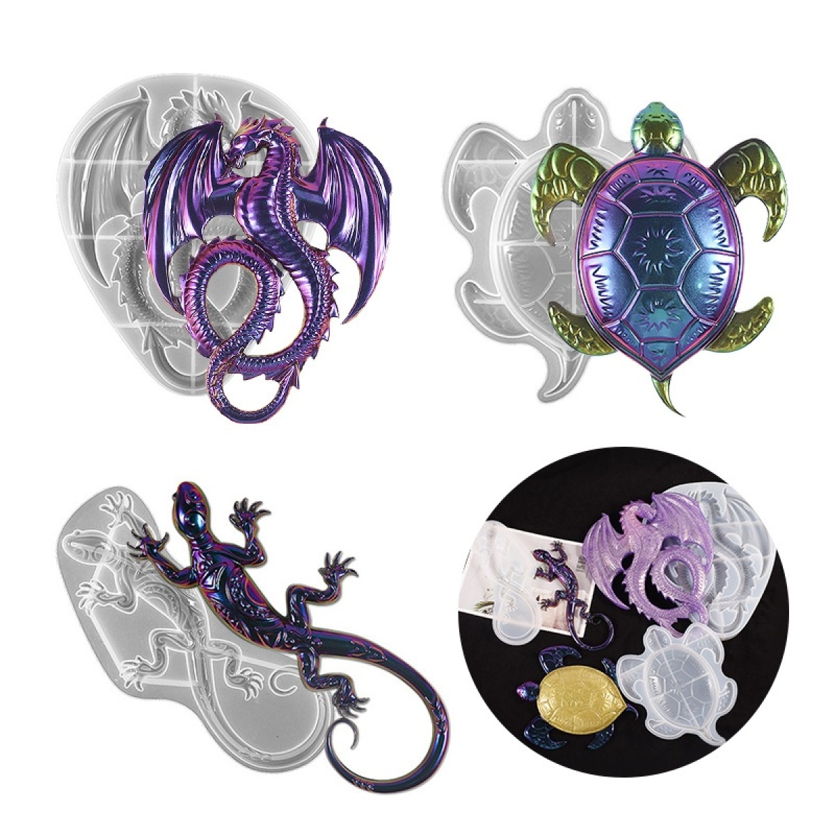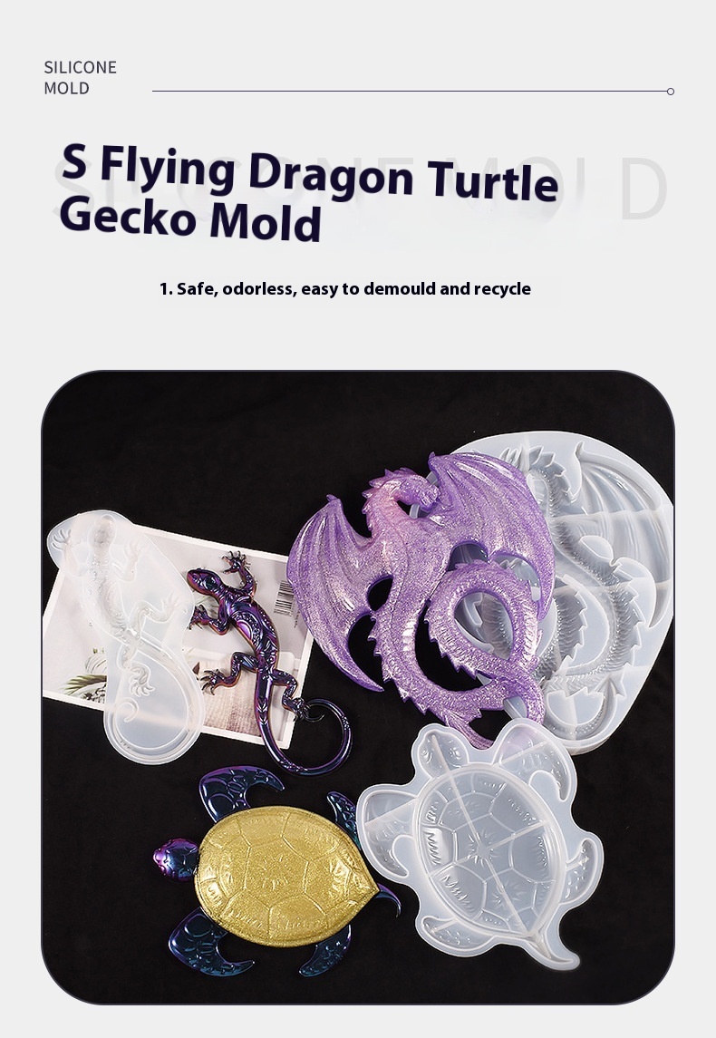 Specifications: Flying Dragon silicone mold, turtle silicone mold, pattern gecko mold, Angel tray mold (12)
