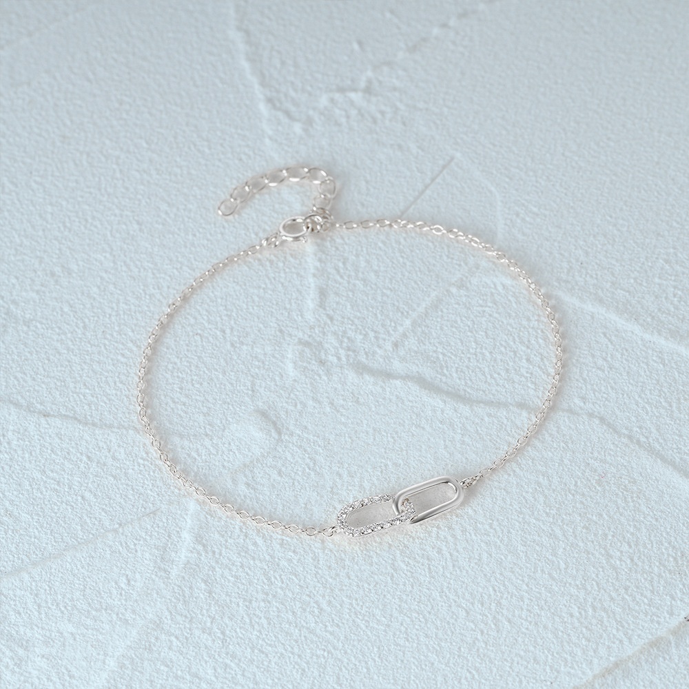 925 Sterling Silver Cross Double Buckle Zircon Inlaid Daily Wear Bracelet