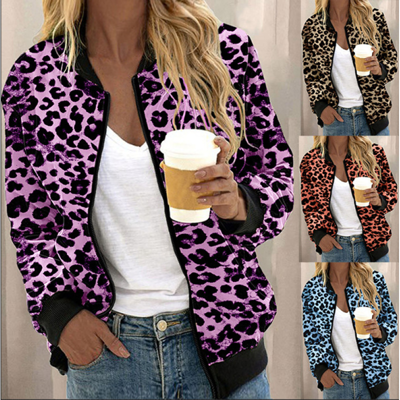 Leopard Print Stand Collar Cardigan Zipper Coat