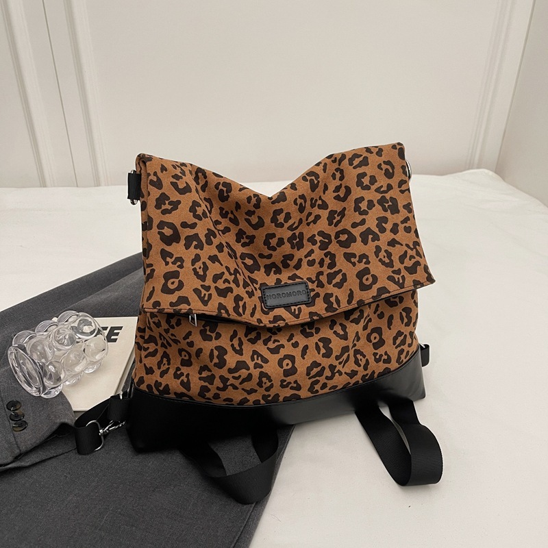 Multi-purpose Casual Fashion Temperament Leopard Print Leather Velvet Backpack Women's Bag