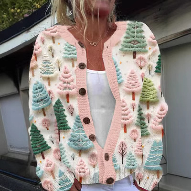 Cardigan Sweater Coat Single Row Button Sweater Printing