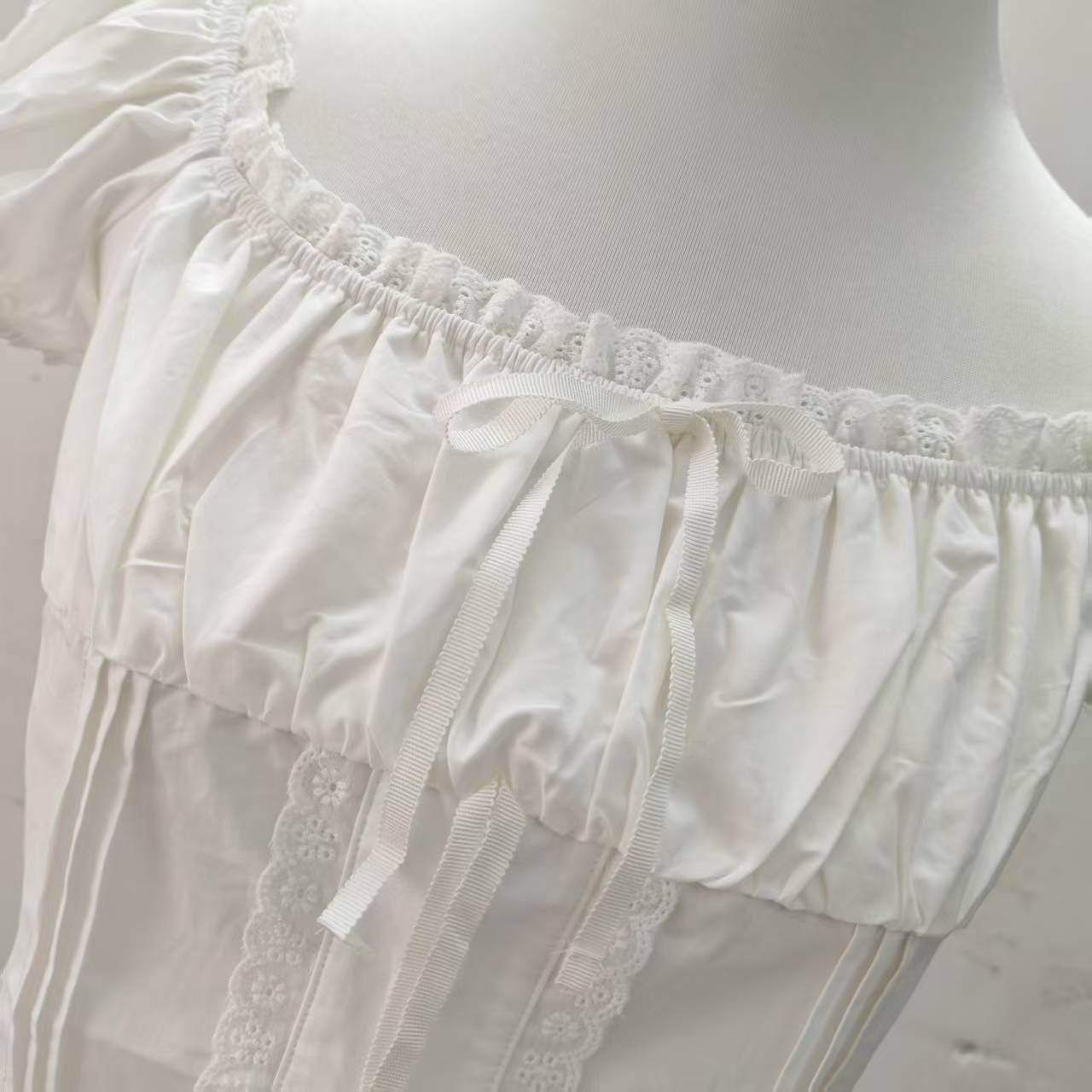 Square Collar Pleated Edge Self-tie Lace Short Top