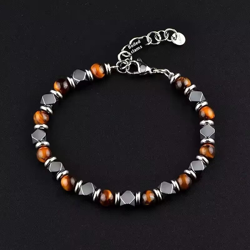 Color: haematite hexagon Tiger Eye bracelet 19cm, haematite rhombus Tiger Eye bracelet 19cm, haematite hexagon volcano bracelet 19cm