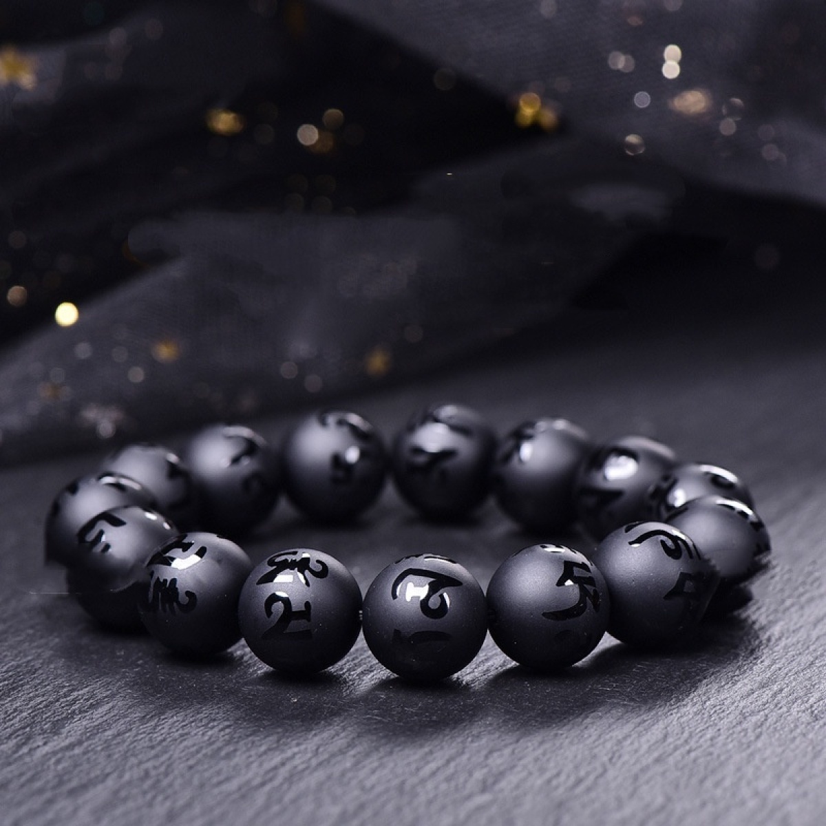 Color: Black stone-colored glaze, natural black agate