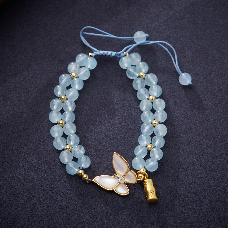 Color: 6MM aquamarine butterfly woven hand strap, 6MM amethyst butterfly woven hand strap, 6MM Moonstone butterfly woven hand rope