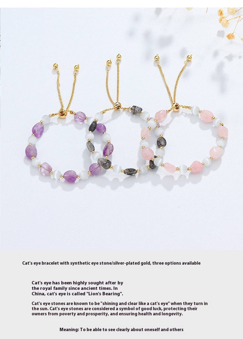 Color: Amethyst white cat eye bracelet, pink crystal white cat eye bracelet, black fur crystal white cat eye bracelet