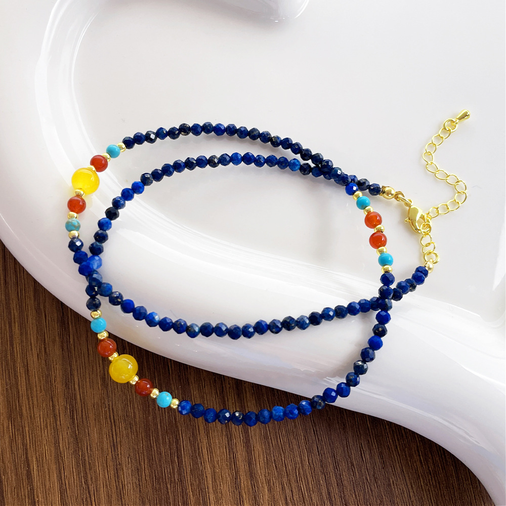 Pendant Element Natural Stone Lapis Lazuli Beaded Necklace