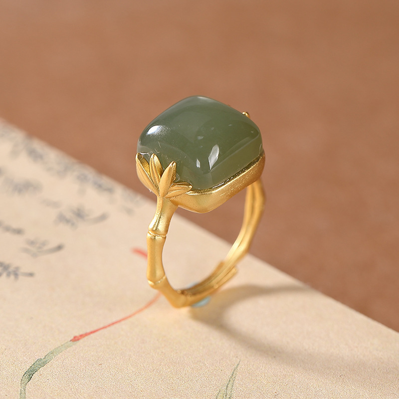 Color: zhuyeqing liquor jade ring, bamboo leaf white jade ring, silver zhuyeqing liquor color ring