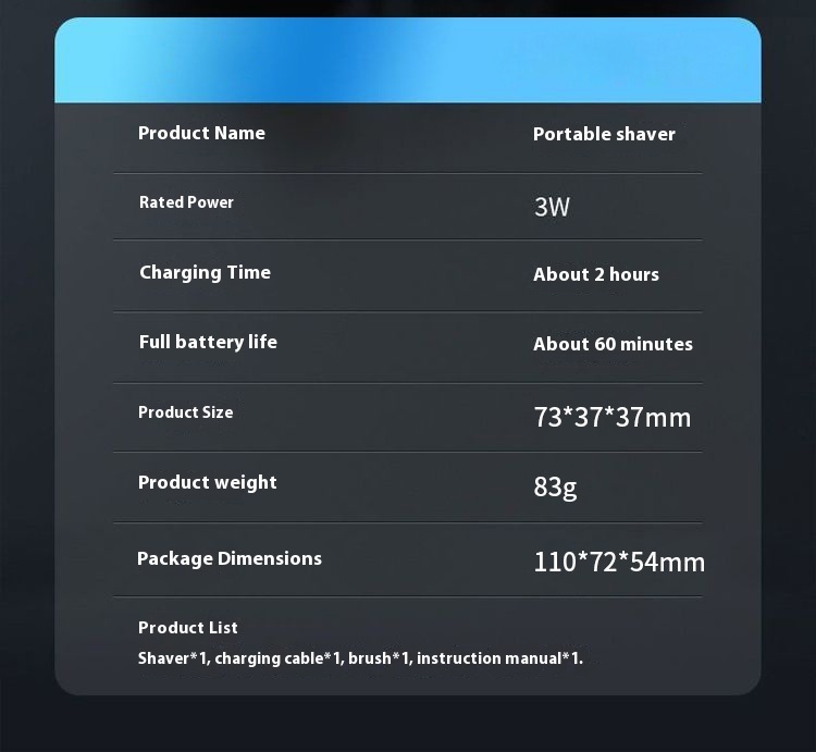 Shaver * 1 Data cable * 1 Cleaning brush * 1 Packaging box * 1 Protective cover * 1