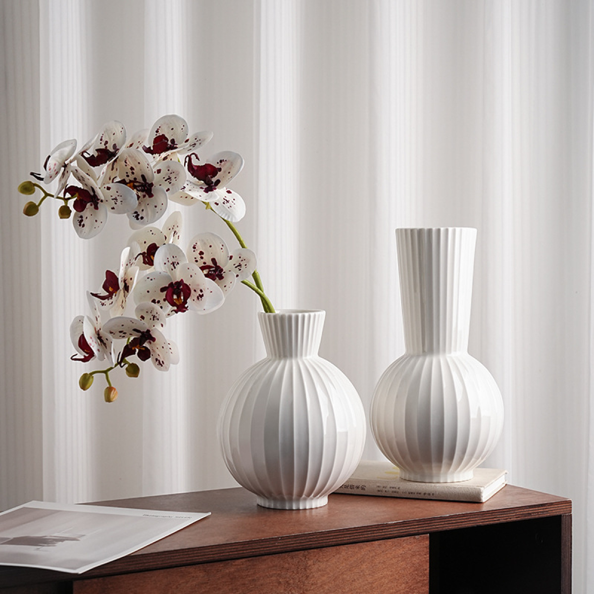 Style 6: ball striped vase large 2 pink purple Phalaenopsis.