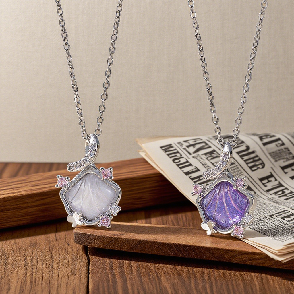 Color: [8011] Diamond White shell necklace silver, [8012] Diamond the purple shell necklace silver, [8013] Diamond pink shell necklace gold