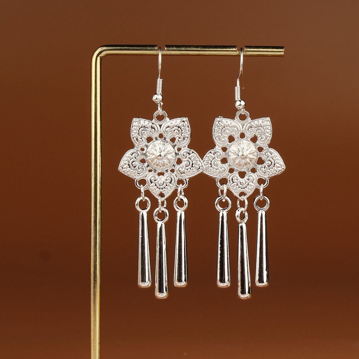 Ethnic Minority Style Retro Miao Silver Earrings Wave