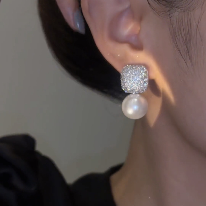 Color: full rhinestone pearl earrings, red earrings, champagne earrings