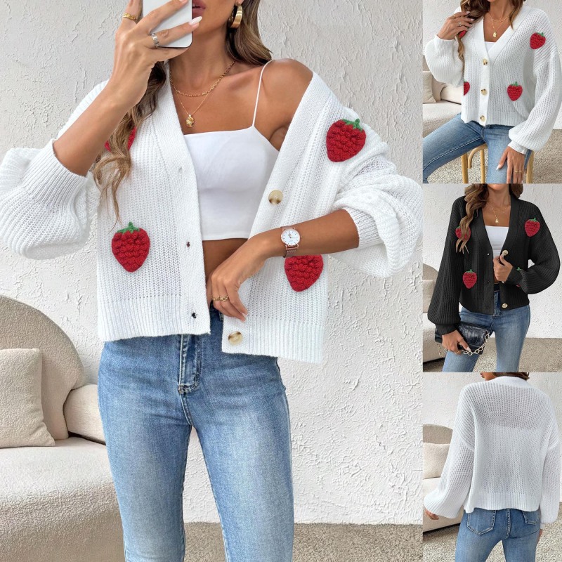 Popular elements: wool strawberry three-dimensional embroidery decoration