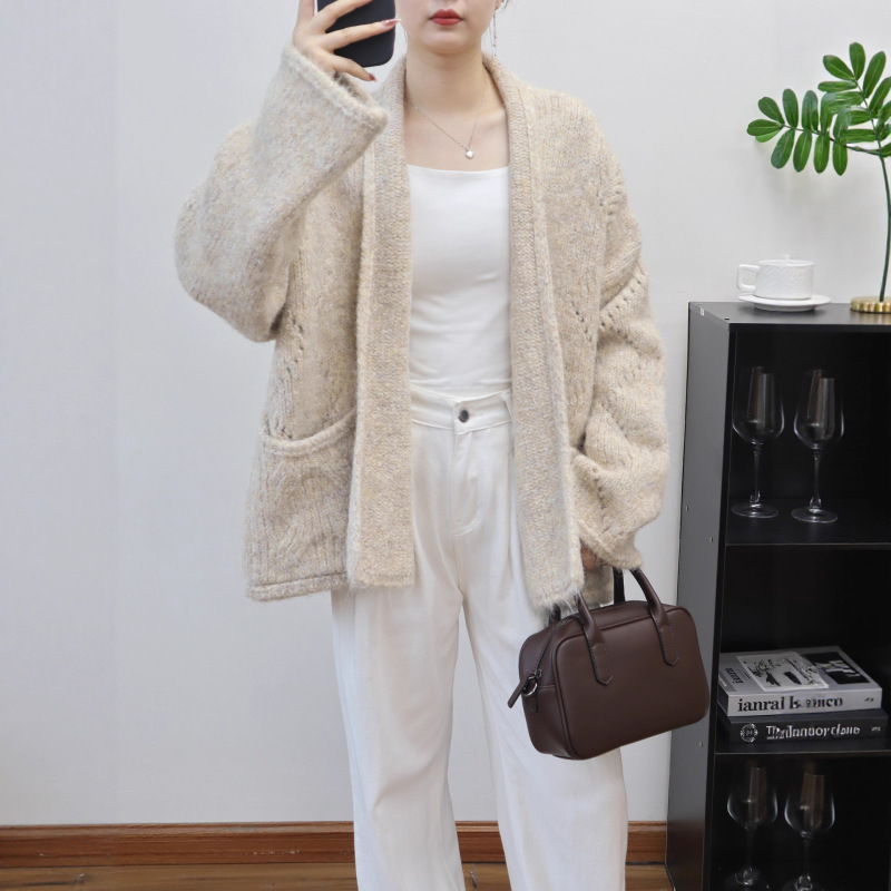 Loose Knitted Cardigan Half-open Collar Women's Sweater Jacket