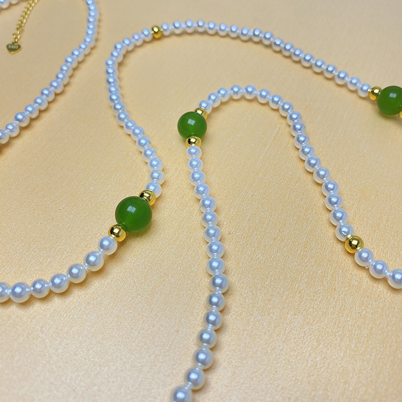 Material: Metal part 925 sterling silver, imitation Shijia crystal pearl, 7A green chalcedony