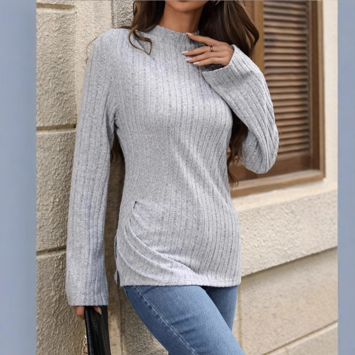 Elegant Solid Color Long Sleeve Women's Top