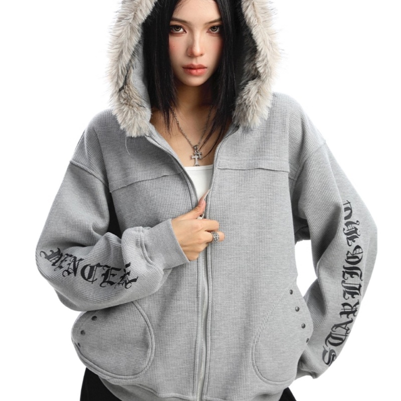 Women's Zipper Cardigan Detachable Fur Collar Sweater