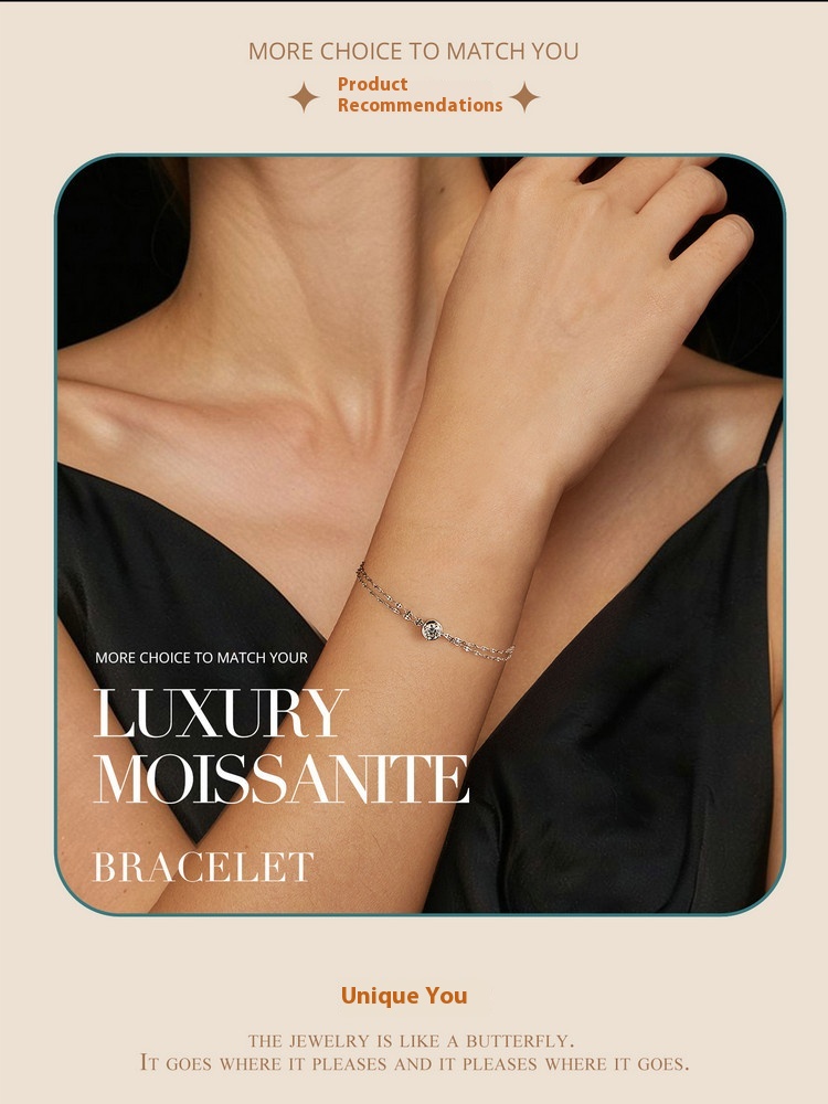 S925 Sterling Silver 50 Points Moissanite Double Layer Bracelet