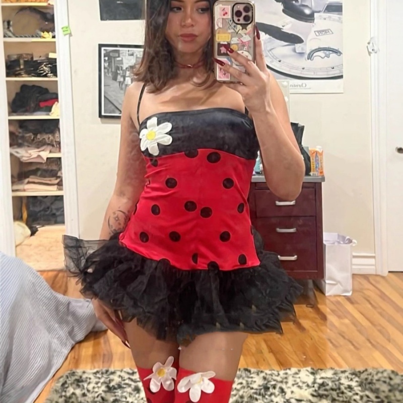 Color: black fluffy hem bee pattern clothes (including hair band Wings socks), yellow stripe bee pattern clothes (including wings hair band), red hem bee pattern clothes (including wings hair band)