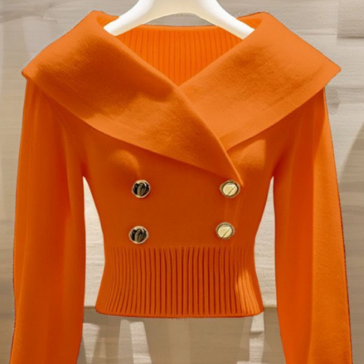 Women's Polyester Lapel Slim Sweater Sweater