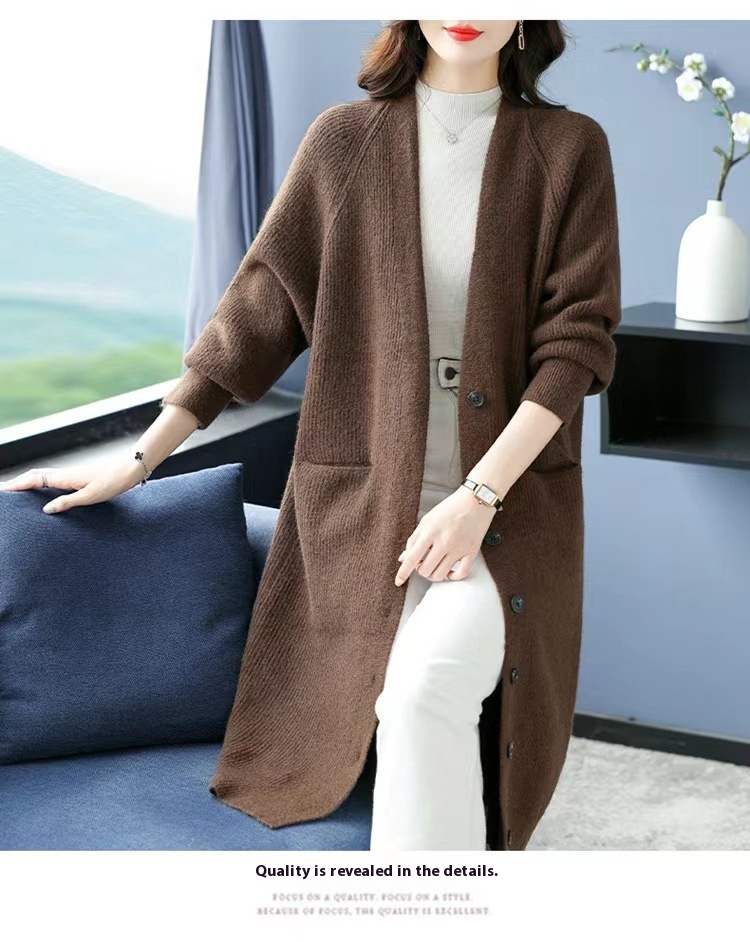 Pocket Knitted Cardigan For Women Loose And Lazy Style V-neck Thick Coat