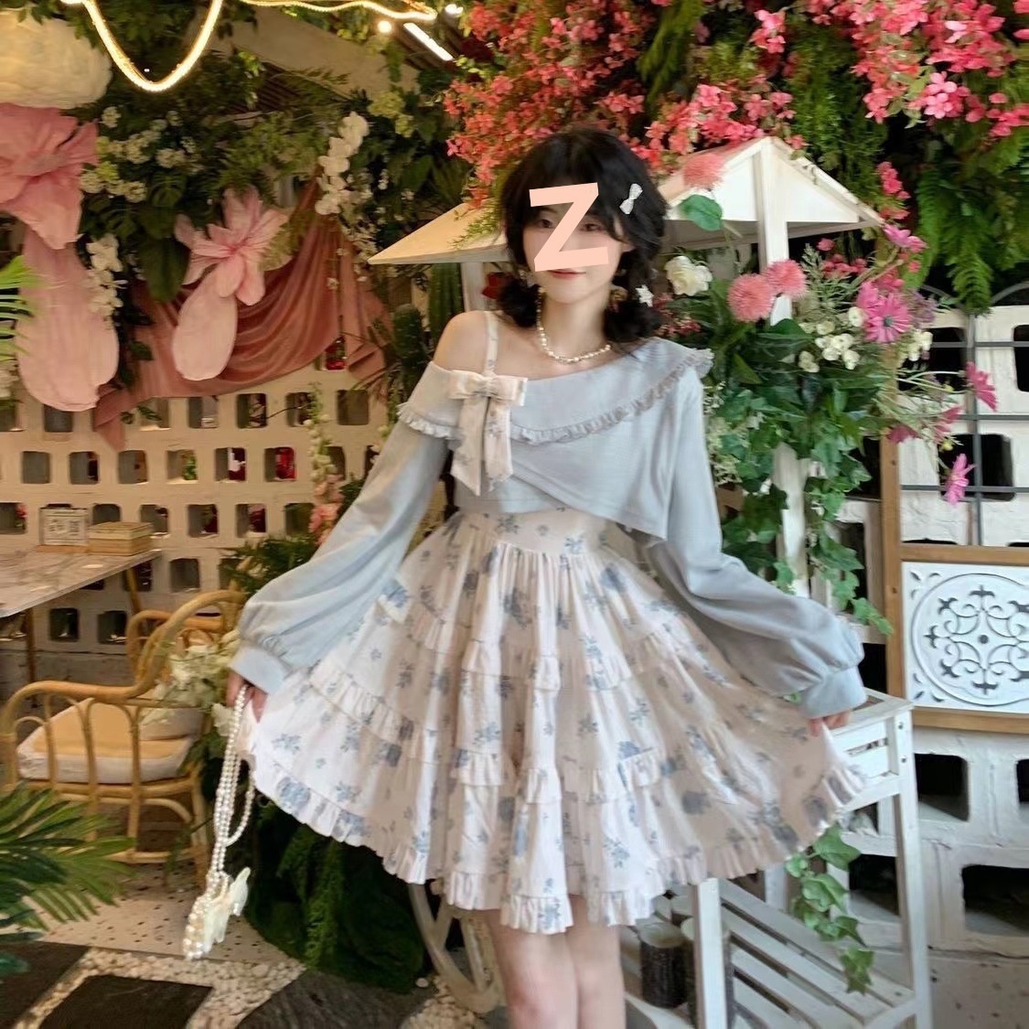 Color: suit * 5476 [blue shawl blue floral slip dress]]