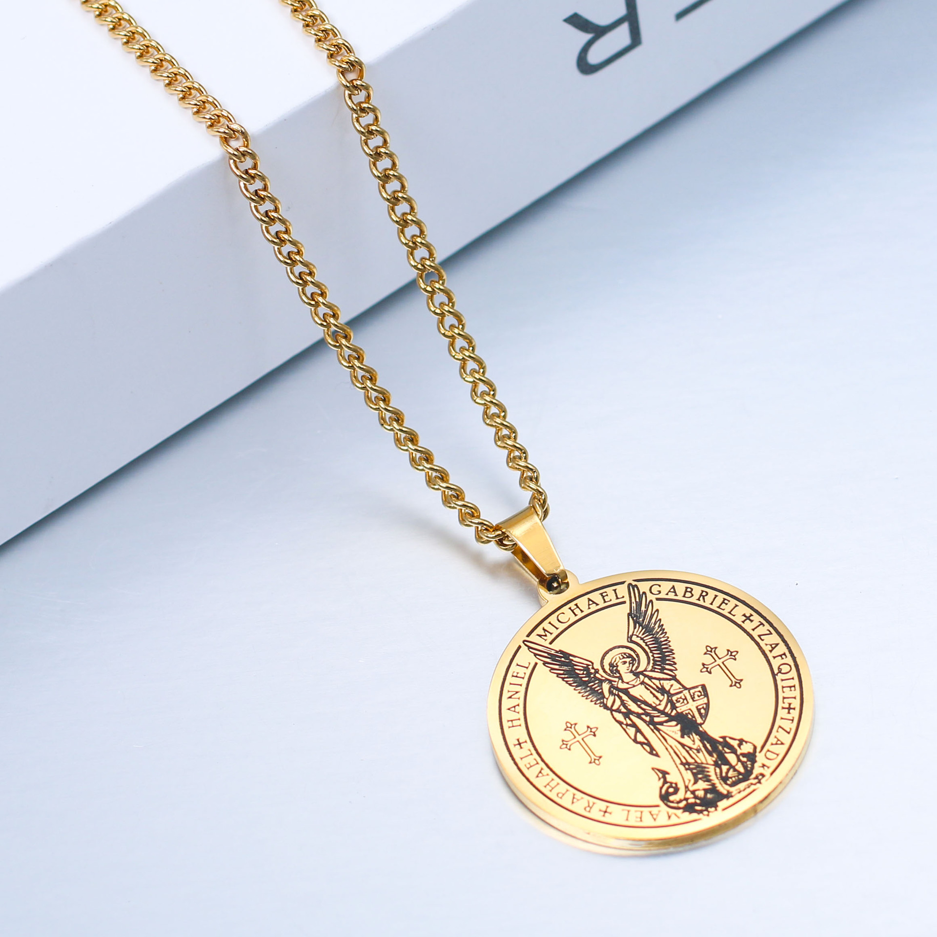 Personality Retro Stainless Steel Archangel Michael Necklace