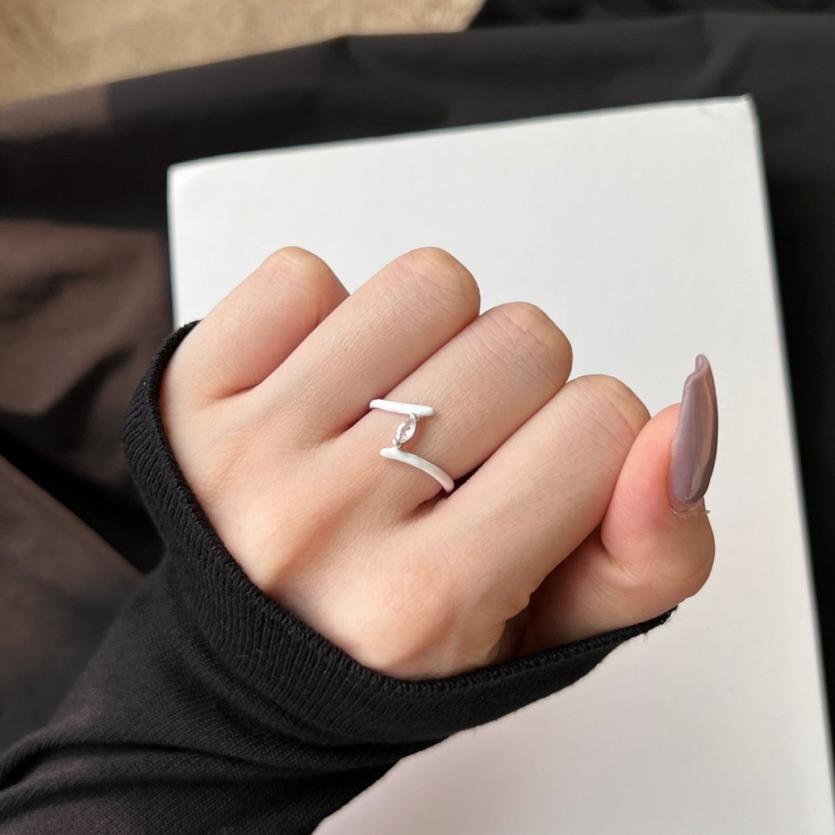 Silver Ring For Female Symmetrical White Design Sense Ornament