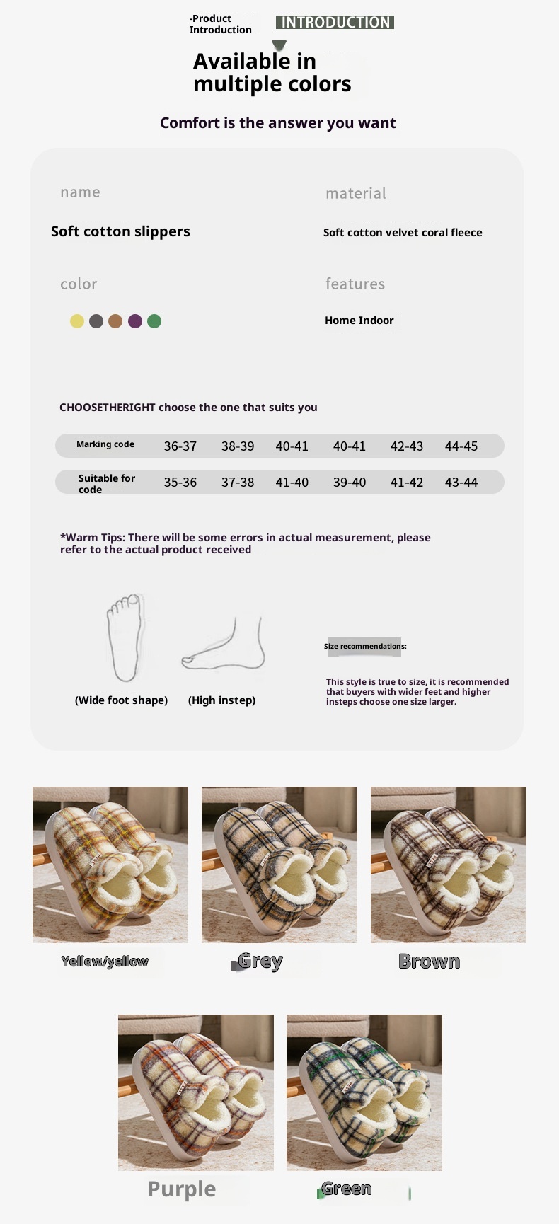 Color: yellow, green, purple, gray, coffee