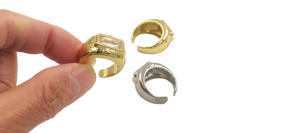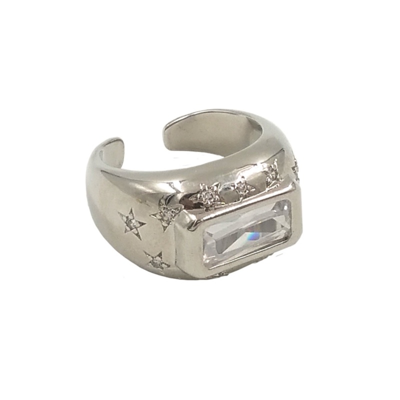 Gold And Silver Color Rectangular Zircon Inlaid Open Ring