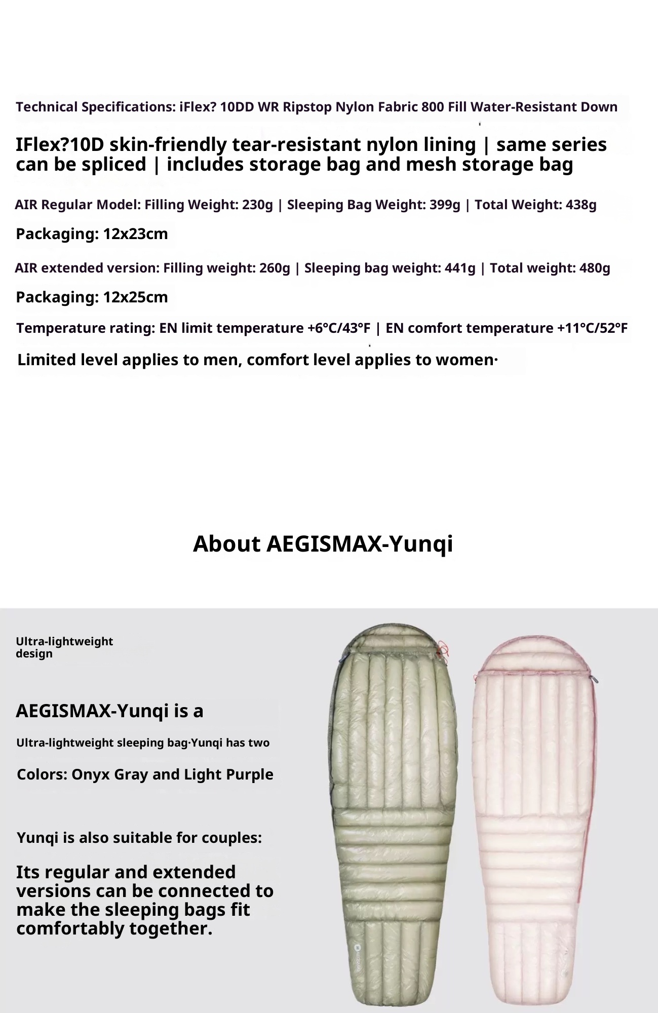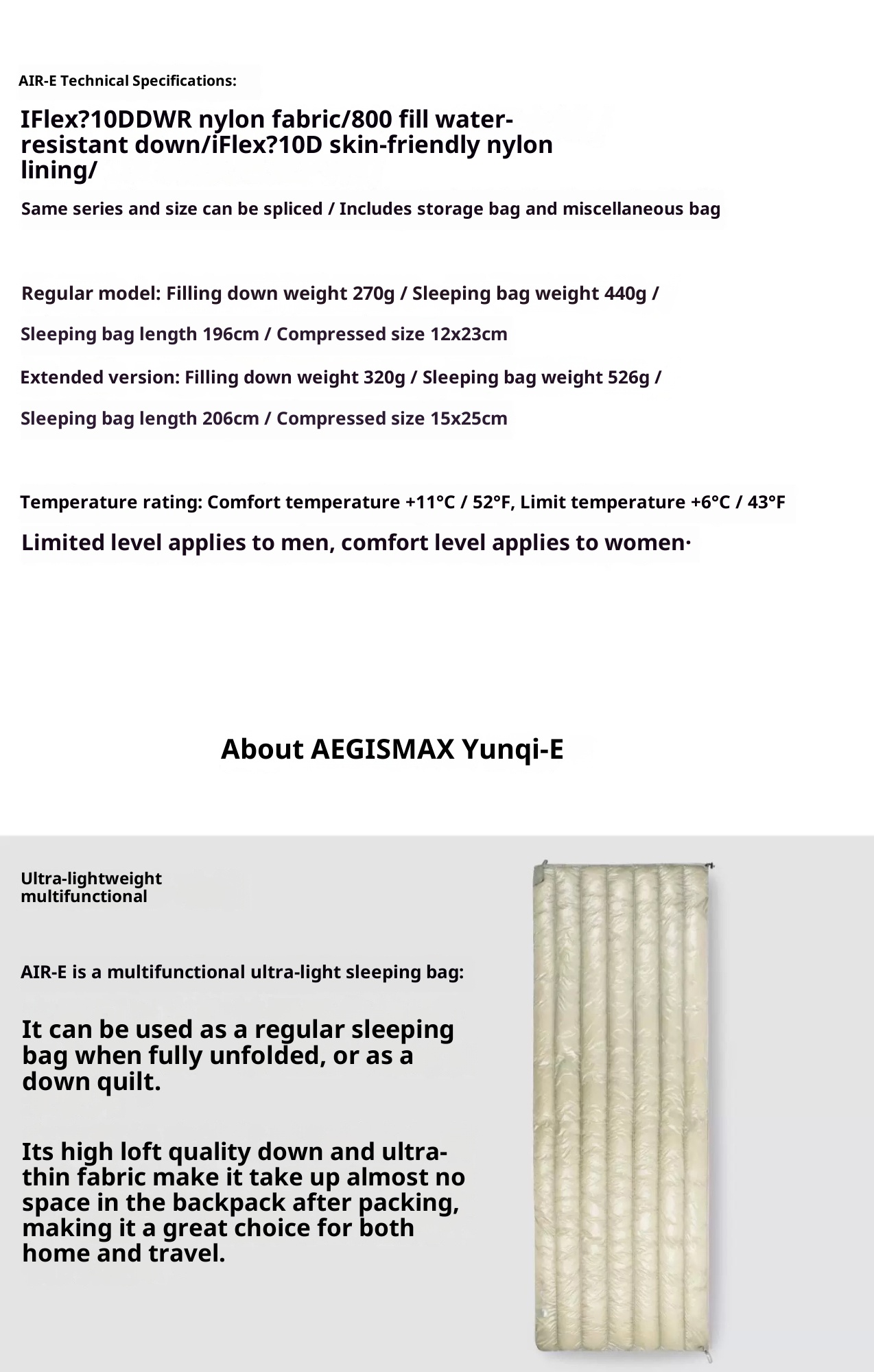 Sleeping bag classification: down-filled sleeping bag