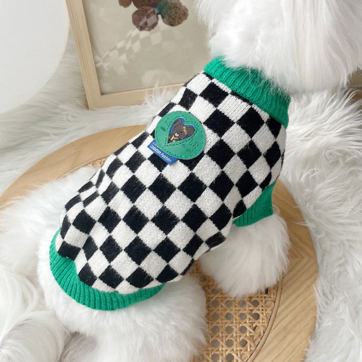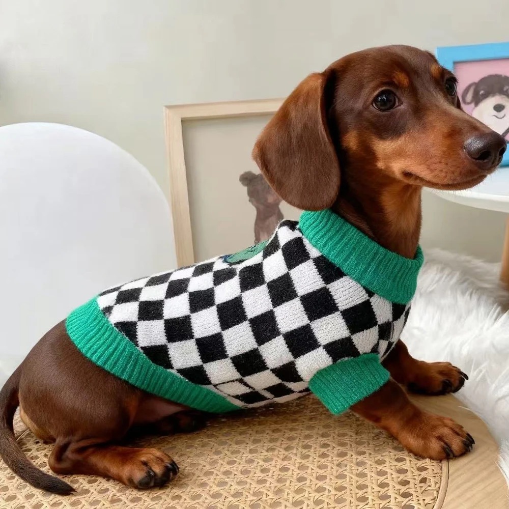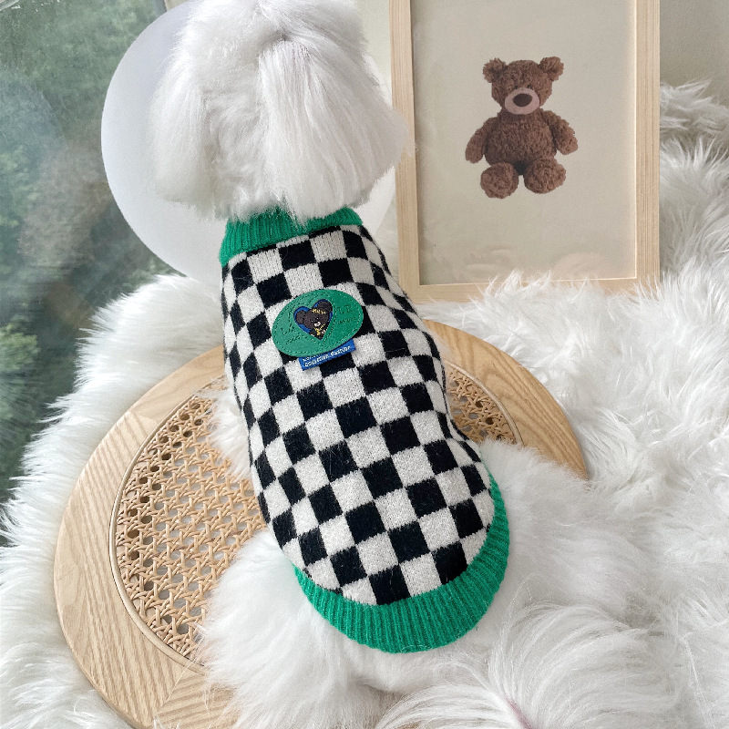Color: green collar black and white checkerboard sweater