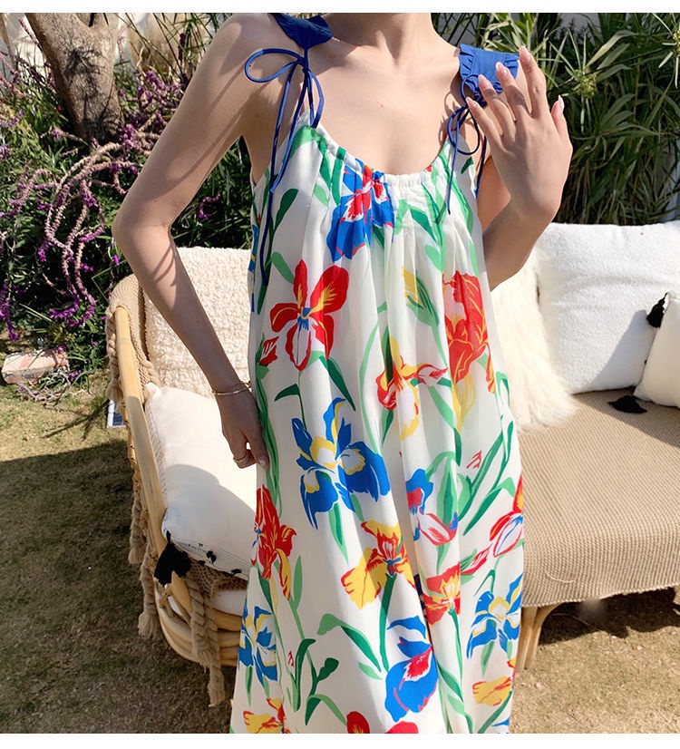 Printing Slip Dress Seaside Vacation Beach Women