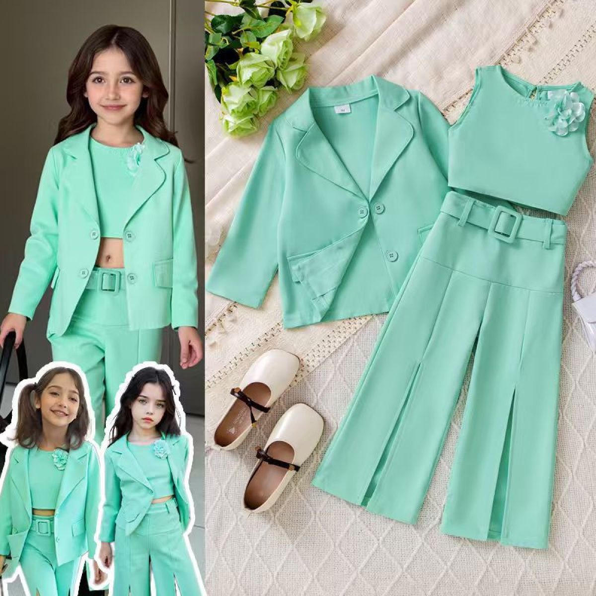 Girl's Casual Korean Wide-leg Pants Set